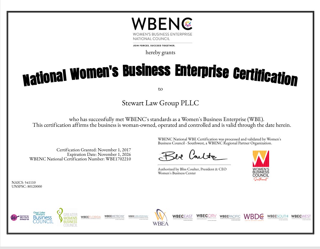 WBE – WBENC – Women’s Business Enterprise National Council Certificate