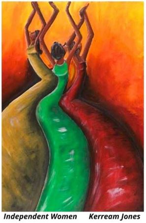 Although the term “Starving Artist” does not apply to the painter Kerream Jones, the hunger of the self-described visual griot is evident in the sensual depths of his paintings, the relentless drive of his business ventures, and his appreciation for all things creative, expressive, and true. Emotions seem to leap off his brush, land on the canvas, and distill art from the vapors of life.